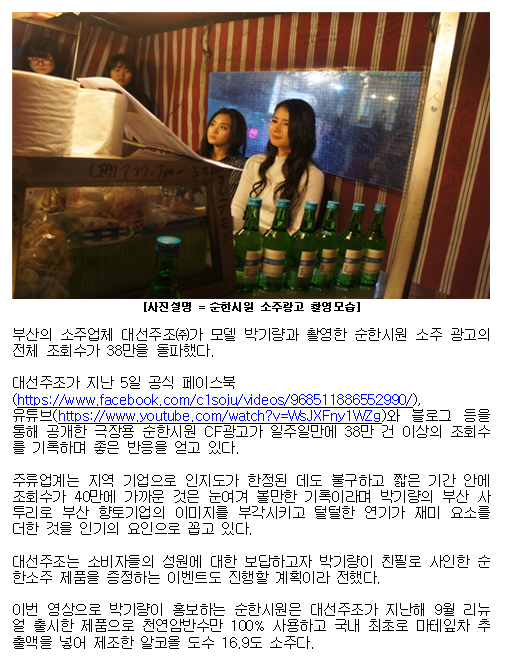 박기량 털털한 연기 통했다! 소주광고 조회수 38만 돌파