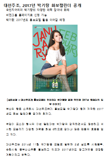 대선주조, 2017 박기량 화보캘린더 공개